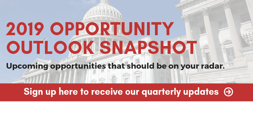 Don’t miss a beat! Stay on top of the latest government contracts and sign up for our 2019 Opportunity Outlook Snapshot.