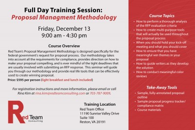 Training: Proposal Management Methodologies – Dec. 13